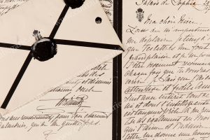 de son monogramme surmonté d'une couronne, conservée avec son enveloppe ayant au dos plusieurs cachets de cire noire à son chiffre. Texte en français.