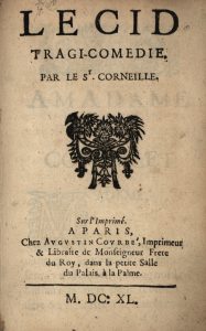 Le Cid. Tragi-comedie. Sur l'imprimé : Paris, Augustin Courbé [Caen, Jacques Mangeant], 1640. Petit in-8, veau blond, guirlande dorée en encadrement, dos lisse orné de roulettes dorées, tranches rouges (Reliure moderne). Contrefaçon normande extrêmement rare. Elle est demeurée inconnue à la Bibliographie cornélienne d'Émile Picot. On a ajouté un portrait de l'auteur en frontispice. Trois ex-libris modernes aux initiales M. – St. Kongensgade 40 (Copenhague), CE et KSE. Petit travail de ver épargnant le texte dans l'angle supérieur des feuillets. Le Verdier-Pelay, n°275.2 – Riffaud : 1640, n°12 – Riffaud, « L'impression du Cid », RHLF, 2006/3, pp. 543-570.