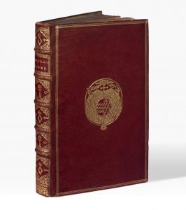 Nouveau sistême du microcosme, ou Traité de la nature de l'homme ; dans lequel on explique la cause du mouvement des fluides, le principe de la vie, du sang et des humeurs, la génération, et les autres opérations des parties du corps humain. Par le Sr. de Tymogue. La Haye, Michel Guyot de Merville, 1727. In-8, maroquin rouge, triple filet doré, armoiries au centre, dos orné de pièces d'armes alternées, dentelle intérieure dorée, tranches dorées (Reliure de l'époque). Édition originale de ce rare traité de physiologie humaine, publiée sous pseudonyme et dédiée au duc de Noailles. Elle est illustrée d'une grande planche gravée en taille-douce et repliée montrant l'anatomie de l'homme et de la femme. Exemplaire en grand papier relié en maroquin rouge aux armes du cardinal Gaston de Rohan-Soubise (1674-1749), évêque de Strasbourg et grand aumônier de France. « Ce prélat, qui fit construire le palais épiscopal de Strasbourg et réparer magnifiquement le château de Saverne, aimait les belles choses et notamment les livres ; sur les inspirations du savant abbé Oliva, son bibliothécaire, il acheta du président Charron de Ménars la presque totalité de la collection des deux de Thou ; à sa mort, tous ses livres passèrent à son neveu, le prince de Soubise » (OHR). Les macles et les hermines couronnées dorées en alternance sur le dos du volume se retrouvent d'ailleurs sur les livres de son neveu. De la bibliothèque du comte F. de Rohan-Chabot, avec ex-libris. Menus frottements à la reliure, un mors fendillé, intérieur jauni avec de légères rousseurs. Pas dans Norman, Waller, Garrison-Morton, Heirs of Hippocrates – OHR, 2030.
