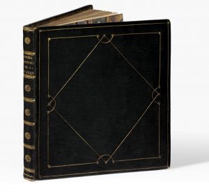 Divers desseins de figures dédiés à Monsieur Colbert d'Ormoy. Paris, N. Langlois, [1679]. In-12 carré, maroquin vert à long grain, décor losange-rectangle au filet doré, dos lisse orné, dentelle intérieure dorée, tranches dorées (Reliure vers 1800). Premier tirage de cette rare suite de trente eaux-fortes originales de Sébastien Leclerc, à la manière des Caprices de Callot, composée d'un titre orné et 29 planches numérotées de 2 à 30. Elle est dédiée à Jules-Armand Colbert, marquis de Blainville et d'Ormoy, surintendant des bâtiments de France. Belles épreuves après les numéros dans une jolie reliure en maroquin vert de la fin du xviiie siècle. Ex-libris moderne aux initiales PAW. Infime accident sur un mors, rares piqûres marginales. IFF, VIII-IX, nos959-981 – Jombert : Leclerc, n°150.