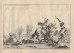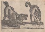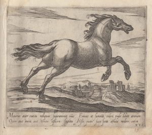 [Recueil de gravures]. In-4 oblong, demi-basane fauve (Reliure du XIXe siècle). Réunion de trois suites très rares de gravures équestres et animalières par Antonio Tempesta et Stefano Della Bella. I. TEMPESTA (Antonio). [Chevaux]. His ducibus princeps… S.l. [Rome], 1590. Un frontispice allégorique, une dédicace à Virginio Orsini et 27 planches (sur 28) dessinées et gravées sur cuivre par Tempesta représentant des chevaux de selle dans diverses postures. La planche n°2 manque. Épreuves à belles marges. – Bartsch, nos 941-968. II. TEMPESTA (Antonio). [Combats d'animaux]. Admodum illri D.D. Nereo Dracomannio… Rome, Nicolaus van Aelst, 1600. Une dédicace à Neri Dragomanno et 18 planches (sur 25) gravées sur cuivre par Antonio Tempesta, représentant de curieux combats opposant chevaux, fauves, béliers, chien, chat, ours, léopard, sanglier, licorne, dragon, centaure, etc. Épreuves contrecollées avec filet de marges. – Bartsch, nos 915-940. III. DELLA BELLA (Stefano). Varie figure. [Paris], Ciartres, s.d. [v. 1645]. Un titre et 5 planches (sur 7) gravées à l’eau-forte par Stefano Della Bella (1610-1664), avec l'excudit de l'éditeur parisien François Langlois, dit Ciartres. Épreuves à belles marges. – De Vesme-Massar, nos 173(i), 175-178, 180. Annotations anciennes en marge ou au verso de quelques planches ; croquis à la sanguine au verso de trois planches ; le frontispice initial porte au verso la mention : Livre de cheveaux et plusieur animeaux d'apres le Tempesta (sic), suivie d'une signature. Quelques planches défraîchies, tachées ou anciennement renforcées au verso ou dans la marge, des mouillures, reliure frottée.
