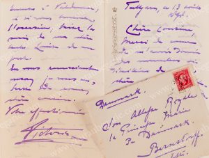 VICTORIA, reine de Suède (1862-1930). L.A.S. « Victoria », adressée à Marie d'Orléans, princesse de Danemark (1865-1909), 13 août 1898, in-8, 4 p., sur papier à en-tête de son, monogramme, conservée avec son enveloppe, texte en français