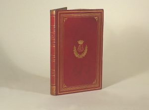 Des vertus militaires et du mérite de la carrière des armes en temps de paix. Paris, Dumaine, 1846. In-8, maroquin rouge à long grain, jeu de filets dorés, monogramme doré palmé surmonté d'une couronne ducale au centre des plats, dos orné, tranches dorées (Reliure de l'époque). Édition originale. Superbe exemplaire relié au chiffre du duc de Nemours (1814-1896), second fils de Louis-Philippe. On joint : COUSIN (Victor). Madame de Longueville. Études sur les femmes illustres et la société du XVIIe siècle. La Jeunesse de Madame de Longueville. Paris, Didier, 1855. In-8, maroquin rouge, large dentelle dorée, chiffre B. E. L. couronné doré au centre, dos orné, dentelle intérieure dorée, tranches dorées (Reliure de l'époque). Troisième édition de cet ouvrage sur la jeunesse de la duchesse de Longueville. Bel exemplaire au chiffre du comte de La Rivière, avex ex-libris.