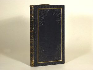 Quiberon. Cinq vendéennes. Paris, C. J. Trouvé, 1826. In-8, maroquin aubergine à long grain, large roulette à froid et filets dorés en encadrement, écoinçons décorés d'entrelacs à froid, dos orné de motifs dorés et à froid, dentelle intérieure dorée, tranches dorées (Simier). Édition originale de ce long poème allégorique célébrant la contre-révolution royaliste en Vendée. Une jolie vignette lithographiée orne le titre du volume. Très bel exemplaire relié à l'époque par René Simier, relieur du roi. Insignifiants frottements aux mors, des rousseurs. On joint : SAPINAUD (Jeanne Ambroise de). Mémoires sur la Vendée, suivis de Notices sur les généraux vendéens et d'un voyage dans la Vendée par M. Sapinaud de Bois-Huguet. Paris, Audin, Urbain Canel, 1824. In-12, broché, couverture imprimée, non rogné. Seconde édition. Dos fendu et passé.