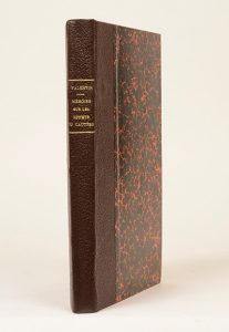 Mémoires et observations concernant les bons effets du cautère actuel, appliqué sur la tête, ou sur la nuque, dans plusieurs maladies des yeux, des enveloppes du crâne, du cerveau et du systême nerveux. Nancy, Hissette, 1815. In-8, demi-percaline maroquinée brune (Reliure moderne d'amateur). Édition originale de ce très rare traité sur l'usage du moxa, un cautère chauffant dont l'origine remonte à l'antique acupuncture chinoise. Exemplaire offert par l'auteur au médecin Louis René Villermé (1782-1863), avec envoi autographe et correction de la même main sur le titre. Rousseurs.