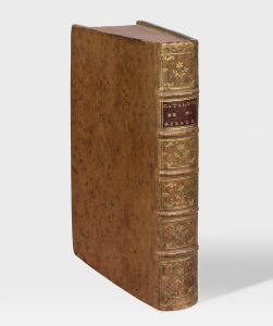 Catalogue des livres de feu M. Giraud de Moucy. Paris, Barrois, 1753. In-8, veau marbré, dos orné, tranches rouges (Reliure de l'époque). Édition originale rare du catalogue de la collection Giraud de Moucy. Établi par Marie-Jacques Barrois, il décrit 9935 numéros. Bel exemplaire, grand de marges, avec les prix d’adjudication et les dates des vacations manuscrits dans les marges. Un mors fendu, petite déchirure marginale aux pp. v-vi. Peignot, 115 – Blogie, II, 6 – North, n°103.