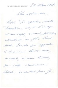 Charles de GAULLE (1890-1970). L.A.S., 20 mars 1968, [à l'historien André Castelot] ; 2 pages in-8 à son en-tête.