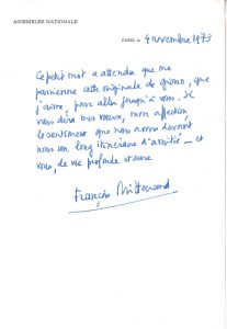 Francois MITTERRAND (1916-1996). L.A.S., Paris 4 novembre 1973, [a Edmonde Charles-Roux] ; demi-page in-8 à en-tête Assemblée Nationale.
