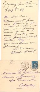 Claude MONET (1840-1926). L.A.S., Giverny par Vernon (Eure) 8 septembre 1889, à Paul Gallimard ; 1 page in-8, enveloppe.