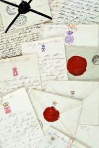 certaines lettres sont conservées avec leur enveloppe, avec cachet en cire rouge et noir au dos, texte en danois.