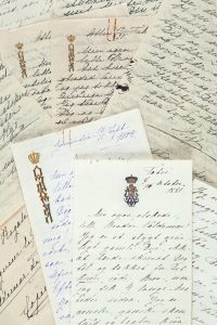 monogramme sous couronne royale, certaines lettres sont conservées avec leur enveloppe, texte en danois.