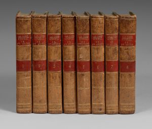 Demi basane brune, dos longs, decor doré, mention «Boissy d'Anglas» en lettres dorées en queue des dos, tranches jaunes.