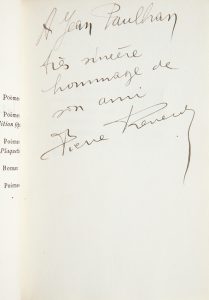 À Jean Paulhan, très sincère hommage de son ami, Pierre Reverdy.