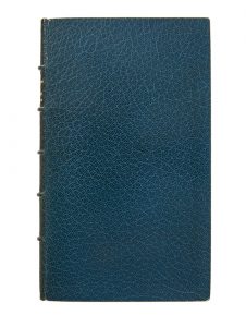 Maroquin bleu, dos à nerfs, tranché supérieure dorée, couverture et dos conservés.