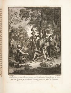 CERVANTES SAAVEDRA (Miguel de). Les Principales avantures de l'admirable Don Quichotte. La Haye : Pierre de Hondt, 1746. —  In-4, 279 x 221 : VIII, 330 pp., 31 planches.
