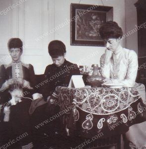 apparaissent : chasse à courre en forêt de Chantilly ; le duc de Magenta posant avec ses enfants Marie et Maurice sur les marches de Saint-Firmin ; les meutes de chiens ; la princesse Margareth et son frère Viggo de Danemark ; le prince Valdemar de Danemark en tenue d'officier de la marine danoise posant en compagnie de trois de ses fils les princes Aage, Axel et Erik de Danemark ; les officiers et matelots à bord d'un bâtiment danois ; le prince Valdemar en compagnie des hommes d'équipage de son bateau ; chasse à courre en forêt de Chantilly ; vue des écuries de Bernstorff ; le duc de Chartres posant assis sur un banc en compagnie de ses petits-enfants la princesse Margarteh et le prince Viggo de Danemark ; le duc et la duchesse de Magenta posant en tenue d'équitation ; la duchesse de Chartres et son chien assise sur un banc ; les sonneurs de chasse à courre et les meutes de chiens ; le prince Henri de Danemark sur les marches du château de Bernstorff et la princesse Marie d'Orléans ; le duc de Guise et le prince Axel de Danemark en tenue de l'armée danoise ; le prince Harald de Danemark et sa fiancée la princesse Hélène de Schleswig-Holstein ; assis sur une balançoire posent les enfants du roi Fréderic VIII de Danemark : les princesses Ingeborg, Louise et Thyra, le prince Gustave et leurs cousins les princes Erik et Viggo de Danemark ; posent assis sur un banc la reine Louise de Danemark et la princesse Karoline de Schleswig-Holstein, etc. Couverture en percaline bordeaux, dos et coins en maroquin marron. Usures du temps, mais bon état général. Tirages d'époque montés sur carton. Dim. : photo : H. : 8, 5 - L. : 7 cm. Dim. : de l'album: L.: 23 cm - L.: 32 cm H.: 6, 5 cm.