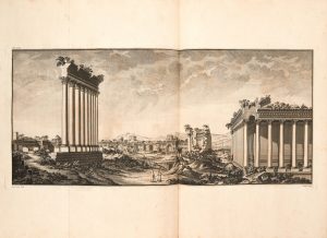 [WOOD (Robert)]. Les Ruines de Balbec, autrement dite Héliopolis dans la Coelosyrie. Londres, 1757. — In-folio, 555 x 370 : (1 f.), 28 pp., 46 planches.