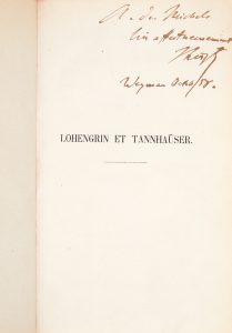 Édition originale peu courante de cette étude de deux des grands opéras de Richard Wagner par le compositeur Franz Liszt. Elle comprend deux planches dépliantes donnant des extraits des partitions des deux pièces.