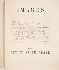 MARTY (Marcelle) - MARQUET (Albert). Images d'une petite ville arabe. [S.l.] : Manuel Bruker, [1948]. — In-4, 325 x 250 : 94 pp., (3 ff. dernier blanc), couverture illustrée. En feuilles, couverture rempliée, chemise et étui de l'éditeur.