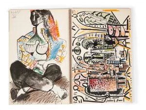 ♦ Édition originale de cet album constituant « le fac-similé exact du carnet de dessin sur lequel Picasso travaille du 1er novembre 1955 au 14 janvier 1956.