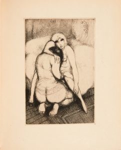 [VERLAINE (Paul) sous le pseudonyme de Pablo de Herlagnèz]. Les Amies scène d’amour sapphique (sic). Sonnets par le licencié Pablo de Herlagnèz. Ségovie [Paris] : s.n., 1870-1926. — In-4, 234 x 192 : frontispice, (20 ff., 2 premiers et 3...