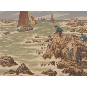 HENRI RIVIÈRE (1864-1961)LES MOUSSES planche 3 de la série Au Vent de Noroît. 1906.Lithographie en couleurs sur vélin, timbrée, légèrement jaunie. Manque et restauration dans l'angle supérieur droit, quelques taches, traces de plis et...