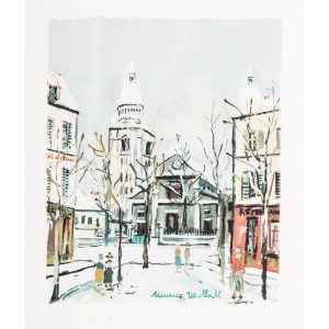 MAURICE UTRILLO (1883-1955)ÉGLISE SAINT PIERRE LE VILLAGEPlanche de l'ouvrage "le Village inspiré". Lithographie en couleurs sur vélin., signature dans la planche. Minuscules taches. Cadre.Feuillet : 400 x 325 mm ; Sujet : 328 x...