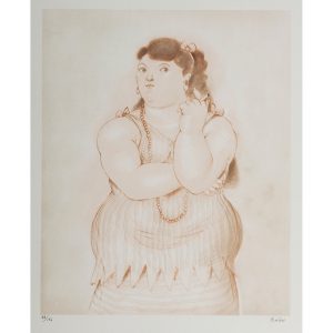 FERNANDO BOTERO (né en 1932)MUJER FUMANDOLithographie en couleurs. Épreuve numérotée 22/150, et signée (numérotation et signature non garanties). CadreFeuillet : 645 x 445 mm ; Sujet : 408 x 330 mm