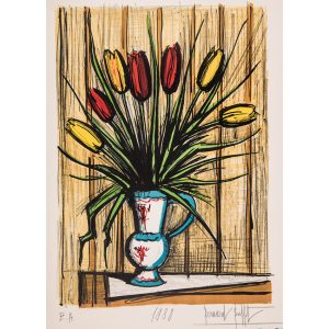 BERNARD BUFFET (1928-1999)LES TULIPES, 1977Lithographie en couleurs sur vélin. Épreuve annotée EA, en dehors de l’édition à 150 exemplaires, datée 1980 et signée. Infime plis en haut à droite, légèrement jaunie. Bonnes...