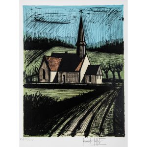 BERNARD BUFFET (1928-1999)ÉGLISE DE LORLEAU, 1982Lithographie en couleurs sur vélin. Épreuve annotée EA XX/XXV, en dehors de l'édition à 125 exemplaires, et signée. Bonnes marges, report du sujet au verso, et très légers...