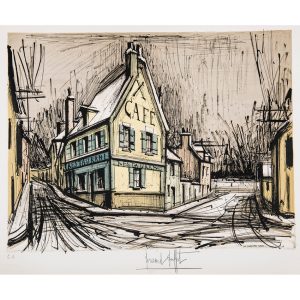 BERNARD BUFFET (D'APRÈS)LA MAISON BLEUE ET JAUNE, 1977Lithographie en couleurs sur vélin, par Charles Sorlier. Épreuve annotée EA et signée, tirage à 300 exemplaires. Pli dans un angle, petite déchirure dans le haut du feuillet. Bonnes...