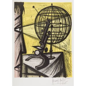 BERNARD BUFFET (D'APRÈS)LE MICROSCOPE, 1969Lithographie en couleurs par Sorlier. Épreuve signée par l'artiste au recto et au verso.Feuillet : 720 x 555 mm ; Sujet : 545 x 420 mmSorlier 316