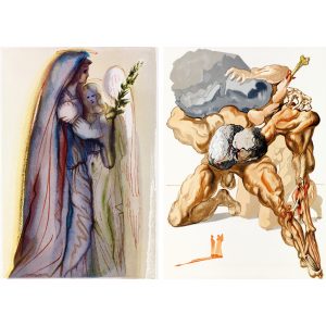 [SALVADOR DALÍ (1904-1989)].- DANTELa Divine comédieParis, les Heures claires, 1963 ; 6 vol. in-4, en ff., couvertures rempliées, chemises et étuis.Célèbre édition orné de 100 aquarelles de Salvador Dali finement gravées sur bois...
