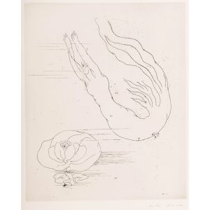 ANDRÉ MASSON (1896-1987)ONDINE, Circa 1934Eau-forte sur vélin. Épreuve numérotée 6/10 et signée. Légèrement jaunie, quelques plis de manipulation et rousseurs.Feuillet : 540 x 445 mm ; Sujet : 325 x 265 mmSaphire 57