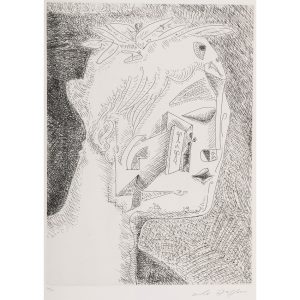 ANDRÉ MASSON (1896-1987)VISAGEEau-forte sur vélin. Épreuve numérotée 20/50 et signée. Quelques plis de manipulation et rousseurs.Feuillet : 546 x 421 mm ; Sujet : 360 x 265 mm