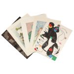 inédits de De Bayser, Édith Boissonnas, Guillevic, Liberati, Mandiargues, Noël, Ponge, Roche, Jude Stefan ornés de 9 gravures en taille-douce, la plupart en couleurs, de Miró, Chillida, Bryen, Ubac, Bona, Matta, Lepatre, Tapiès et Lam.Tirage limité à 132 exemplaires ; l'un des 25 sur papier du Japon nacré (n° 3), contenant deux suites : une suite de neuf gravures chacune signées par un artiste et numérotées 3/25 ; et une seconde suite de neuf états, en noir, également signés et numérotés.Justification signée par l'éditeur.