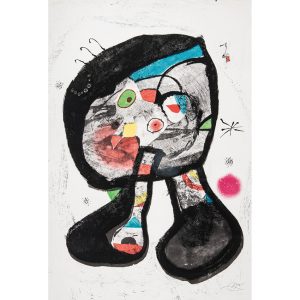 JOAN MIRÓ (1893-1983)LE FANTÔME DE L' ATELIER, 1987Eau-forte sur un fond lithographié. Épreuve sur vélin numérotée 26/65, portant le cachet de la signature certifiée au verso par la succession Miró. Quelques plis et cassures dans les...