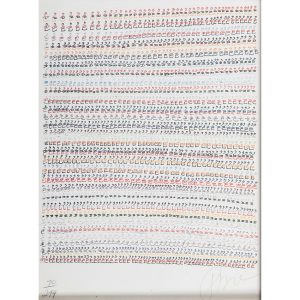 NAM JUNE PAIK (1932-2006)CARACTÈRES, 1974Impression offset. Épreuve numérotée 10/ 299 et signée. Cadre.Feuillet : 380 x 280 mm ; Sujet : 320 x 275 mmCatalogue N.J. Paik, Fluxus Video , Kunsthalle Bremen 1999
