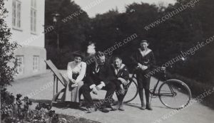 Viggo faisant de la barque ; le prince Viggo et sa tante, l'impératrice Maria Féodorovna, sur la terrasse de Hividor, sa résidence danoise ; la reine Alexandra de Grande-Bretagne avec le prince Viggo sur la terrasse d'Hividor ; le roi Georges de Grèce en compagnie de sa soeur la reine Alexandra de Grande-Bretagne et des princes Viggo et Erik ; la princesse Margareth et son frère Viggo, assis sur un banc ; scène de groupe avec le grand-duc Michel Alexandrovitch, les enfants du prince Valdemar, la reine Alexandra, le roi de Georges de Grèce, le roi Harald de Norvège, le prince Charles de Suède, le roi Christian X, etc. ; vue du château de Gmunden chez les Hanovre ; pose familiale en Autriche, avec le duc et la duchesse de Cumberland, le prince Valdemar et la princesse Margareth ; la princesse Margareth posant jeune fille sur les marches du château de Bernstorff ; la reine Alexandrine de Danemark posant à bord du yacht « Ingolf » avec son fils le futur Frédéric IX ; le roi Christian X de Danemark ; le prince Viggo posant avec son cousin le futur roi Frédéric IX ; la reine Alexandrine de Danemark ; le roi Christian X en tenue de marin assis à bord de son yacht ; la princesse Victoria de Grande-Bretagne ; le prince Peter et sa soeur la princesse Eugénie de Grèce, enfant assis sur un banc ; le prince Viggo et son cousin le prince Peter de Grèce ; le prince Frédéric de Danemark enfant en tenue de marin(Frédéric IX ) ; la reine Alexandrine de Danemark et ses fils Frédéric de Knund ; vue du Château de Chantilly ; le prince Erik de Danemark ; la princesse Margareth de Danemark et sa grand-mère la duchesse de Chartres à Saint-Firmin ; le duc de Cumberland posant avec le prince Peter et sa soeur la princesse Eugénie de Grèce à Bernstorff ; le prince Ernst-Auguste de Hanovre en compagnie de ses soeurs et de la princesse Margareth et du prince Viggo de Danemark en promenade en forêt ; le prince Valdemar et sa fille Margareth assis sur un banc ; pique nique dans le parc de Gmunden avec la famille Hanovre ; etc. Couverture en percaline vert foncé. Usures du temps, mais bon état général. Tirages argentiques d'époque montés sur carton. Dim. photos : panoramiques et formats divers.