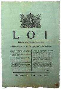 PARIS. 1792. « LOI relative aux COCARDES NATIONALES » Donnée à Paris le 2 Août 1792 « L’Assemblée Nationale décrète que les Cocardes nationales peuvent être formées de toutes sortes d’étoffes & rubans, pourvu qu’elles soient aux...