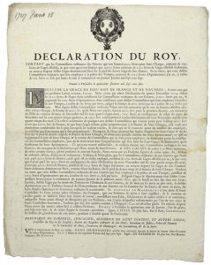 1707. METZ (57) – Déclaration du ROY LOUIS XIV, donnée à VERSAILLES le 15 Janvier 1707, suivi de l’Ordonnance de Dominique DE BARBERIE, chevalier, Seigneur de SAINT CONTEST, intendant en la Généralité de METZ, Frontières de CHAMPAGNE, du...
