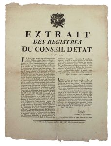 NIÈVRE. ÉTATS-GÉNÉRAUX DE 1789 - Extrait des registres du Conseil d’État, du 2 Mars 1789, signé (impr.) LOUIS XV & LAURENT DE VILLEDEUIL – « Le Roi casse l’ordonnance du Lieutenant-général du Bailliage de ST PIERRE LE MOUTIER du 20...