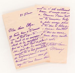 MARIE, princesse de Danemark, née princesse d'Orléans (1865-1909). L.A.S. : « Marie », adressée à sa belle-sœur, la reine Olga de Grèce, née grande-duchesse de Russie (1851-1920), 23 février (sans date), 5 p., in-8. Texte en français.