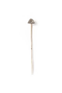 BONAPARTISTES. Epingle à cravate séditieuse sertie d'un diamant taille ancienne en forme de bicorne, monture or jaune, conservée dans un écrin de la Maison Mellerio à Paris. Usure à l'écrin mais bon état. Travail français du XIXe siècle.