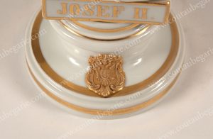 JOSEPH II, empereur d'Autriche (1741-1790). Buste en biscuit le représentant en César, reposant sur un socle rond en porcelaine blanche appliqué des armes impériale de la Maison des Habsbourg. Bon état. Manufacture impériale de Vienne, du XIXe...