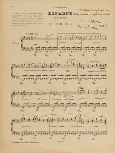 • « À Madame Henry Lerolle en toute amitié et affection sincère I. Albeniz Paris 6 Janvier 1906 ».