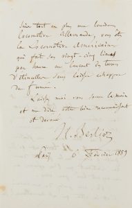 BERLIOZ Hector (1803-1869). L.A.S., 6 février 1859, à Alfred-Auguste CUVILLIER-FLEURY ; 2 pages in-8.