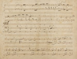 DELIBES Léo (1836-1891). MANUSCRIT MUSICAL autographe signé, Ouverture ; 4 pages oblong in-fol. d’un bifolium (première page un peu salie).