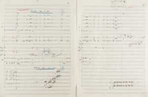Le manuscrit est à l’encre noire sur papier à 26 lignes ; il porte les cachets de la SACEM en date du 8 septembre 1938. Il présente de nombreuses ratures et corrections, avec des collettes ; il a servi de conducteur, et est couvert d’annotations au crayon bleu ou rouge, avec des notes et corrections crayon faisant référence au découpage et aux séquences du film. Il semble avoir été réorganisé en suite d’orchestre.