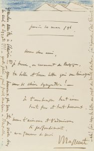 « Je trouve, en revenant de Belgique, ta belle et bonne lettre qui me témoigne une si chère sympathie ! – Je t’embrasse tout ému tout fier et tout heureux.